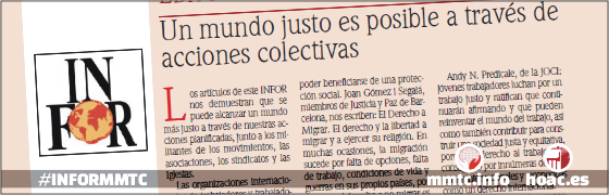 Se añade a la cita la conmemoración de los 50 años al servicio de esta evangelización especializada en el mundo del trabajo. Noticias Obreras ha publicado, en su número de julio, un texto de Basi López, doctora de Historia Contemporánea, en la sección Tema del Mes sobre el recorrido histórico del MMTC. Lo liberamos y compartimos con vosotros y vosotras, como modo de contribuir a la alegría de acercar este proyecto-puente de los trabajadores cristianos junto a su propuesta de humanización para que quienes sufren la precariedad y el descarte de este sistema, su vida, sus necesidades y anhelos…, nos ayude a vivir con plena dignidad.